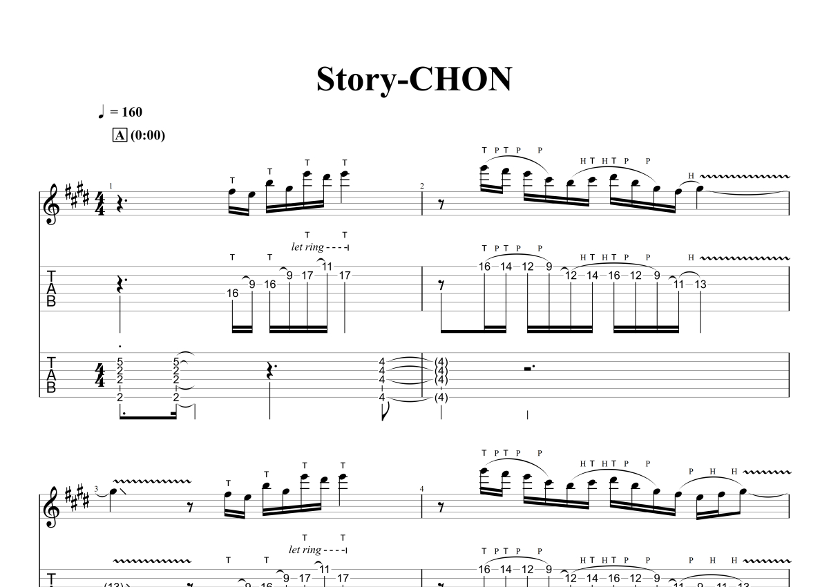 《Story》是Chon演唱的一首歌曲,石头音乐原版记谱,拍号为4/4拍,歌曲速度为每分钟160拍,歌曲原调为E调,演奏时不需要使用变调夹即为原调,这份电吉他谱共有十张高清图谱,图谱由 @石头音乐 编配上传,图谱使用六线谱编配,曲谱配备了相关的音频提供试听,使用这份Story电吉他谱,可以让你更加方便地掌握这首歌曲的演奏技巧,快来尝试吧。数字摇滚。