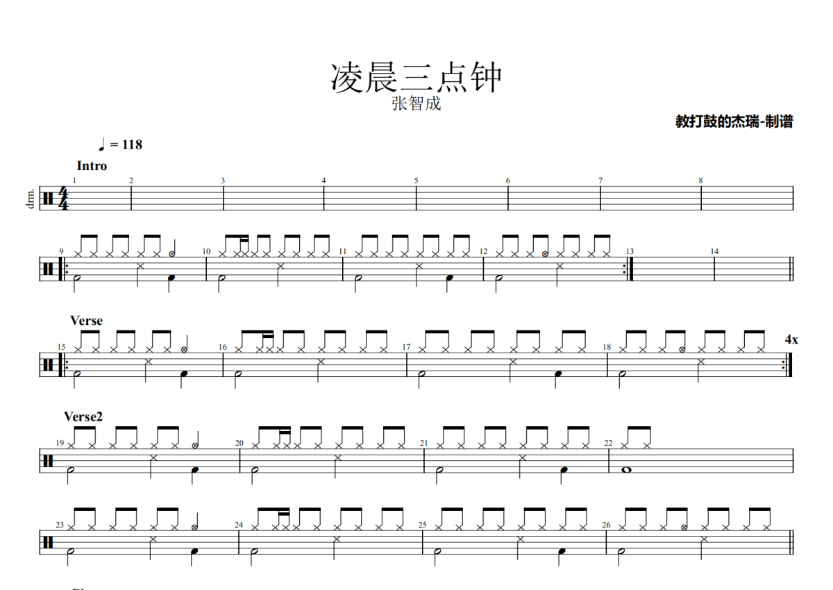 张智成《凌晨三点钟》鼓谱 - 架子鼓谱