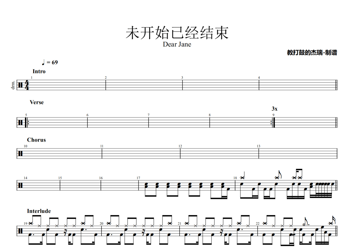 Dear Jane《未开始已经结束》鼓谱 - 架子鼓谱