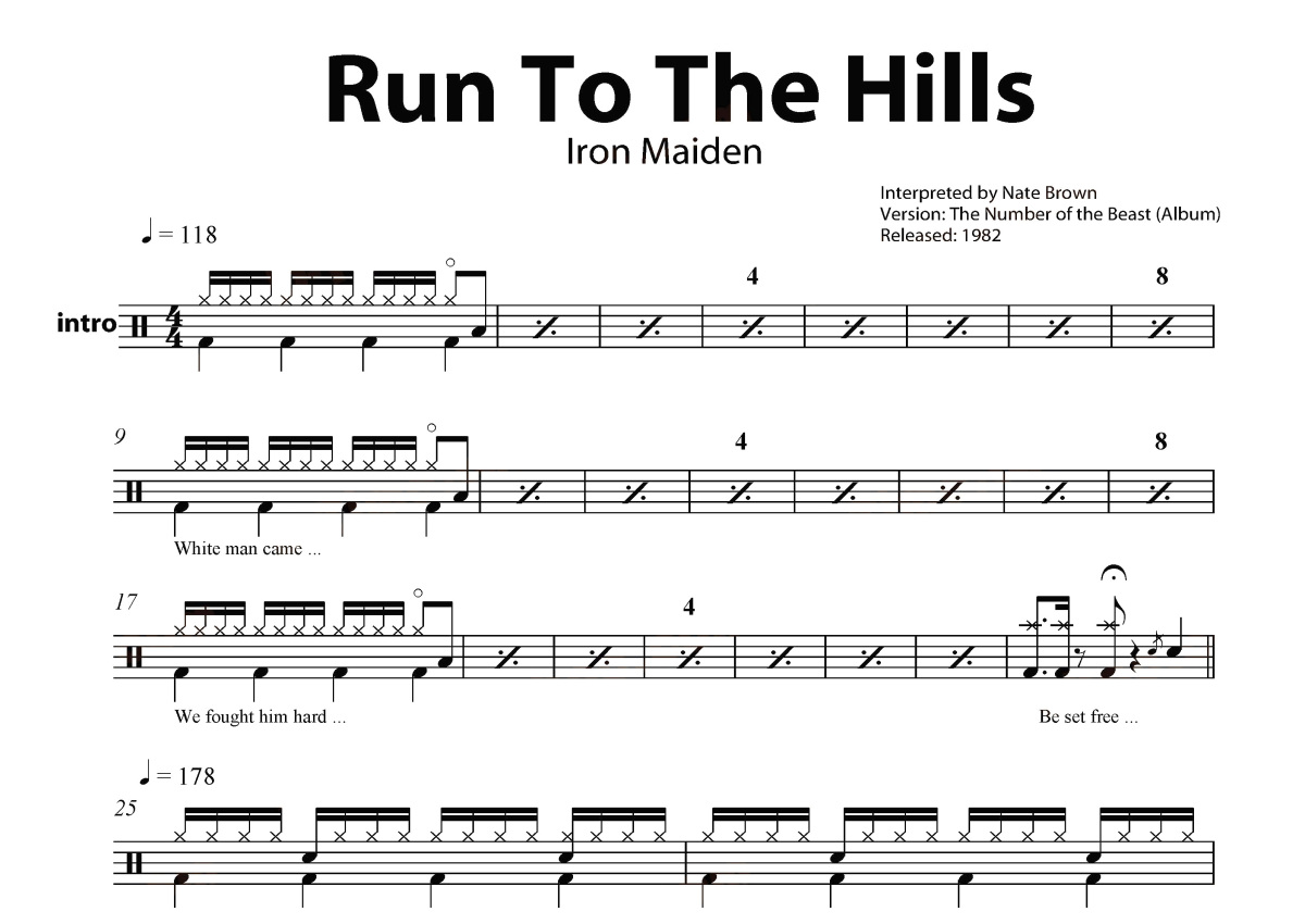Iron Maiden《Run To The Hills》鼓谱 - 架子鼓谱