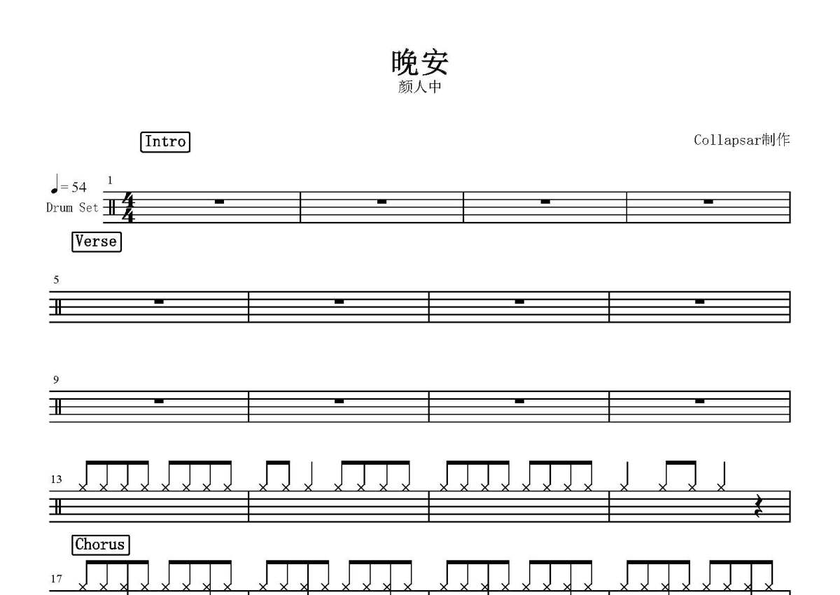 颜人中《晚安》鼓谱 - 架子鼓谱