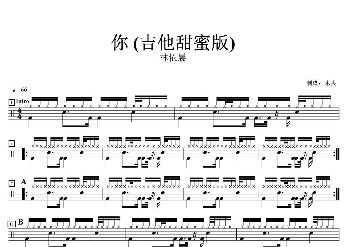 林依晨《你》鼓谱 - 架子鼓谱 - 吉他甜蜜版