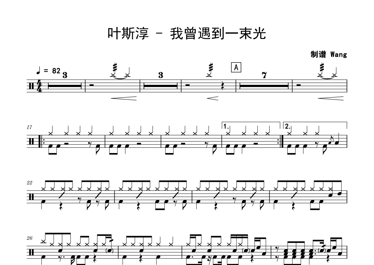 叶斯淳《我曾遇到一束光》鼓谱 - 架子鼓谱
