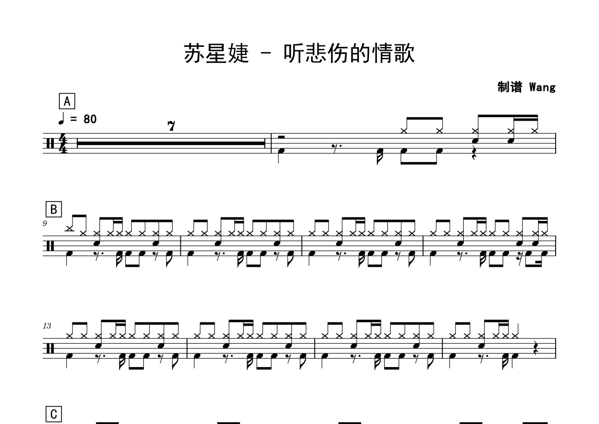苏星婕《听悲伤的情歌》鼓谱 - 架子鼓谱