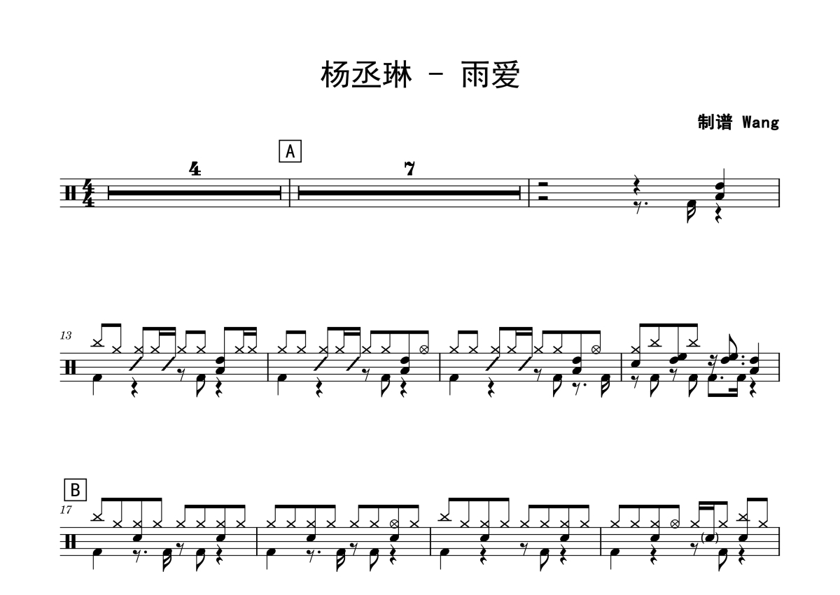 杨丞琳《雨爱》鼓谱 - 架子鼓谱