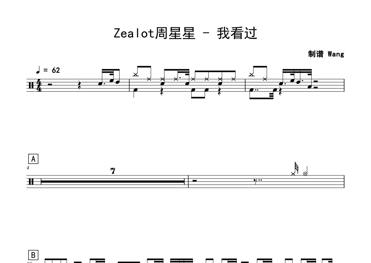 Zealot周星星《我看过》鼓谱 - 架子鼓谱