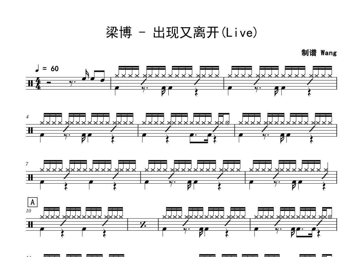 梁博《出现又离开》鼓谱 - 架子鼓谱 - Live