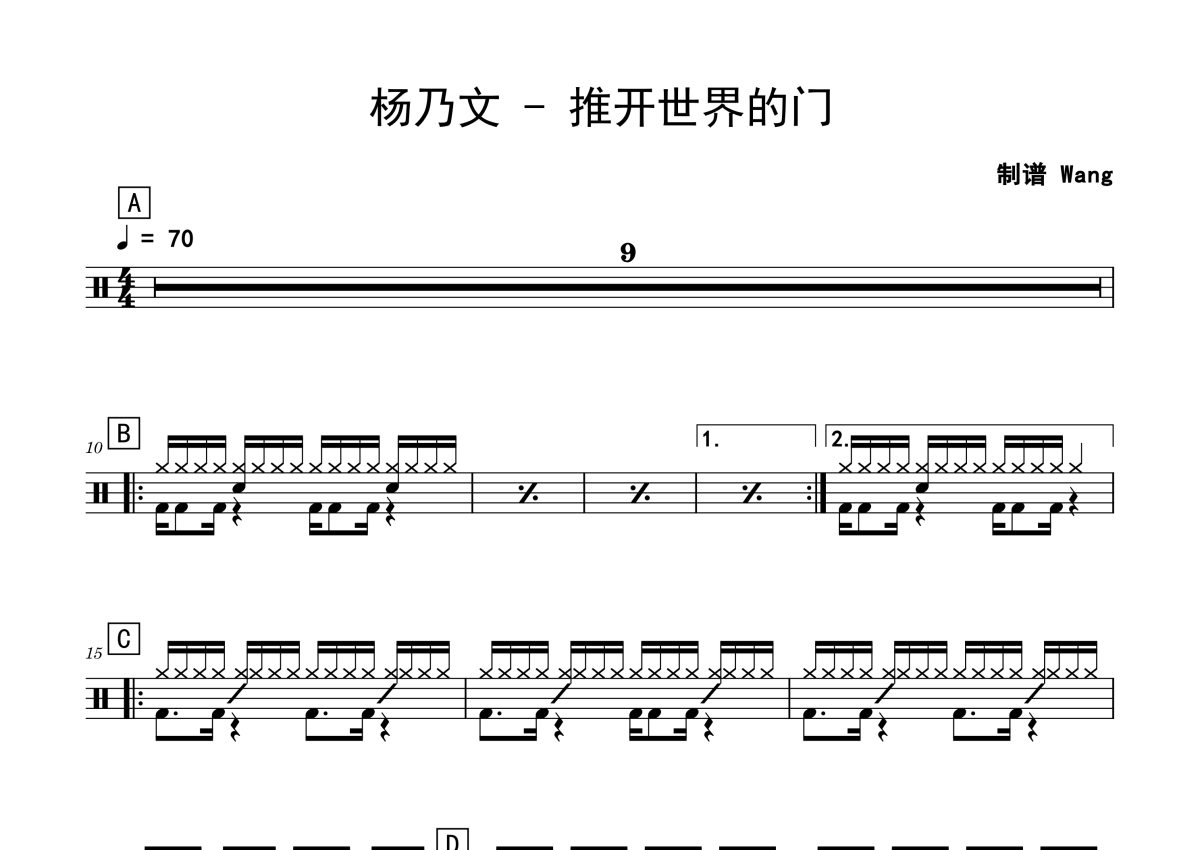 杨乃文《推开世界的门》鼓谱 - 架子鼓谱