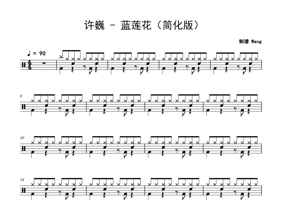 许巍《蓝莲花》鼓谱 - 架子鼓谱 - 简化版