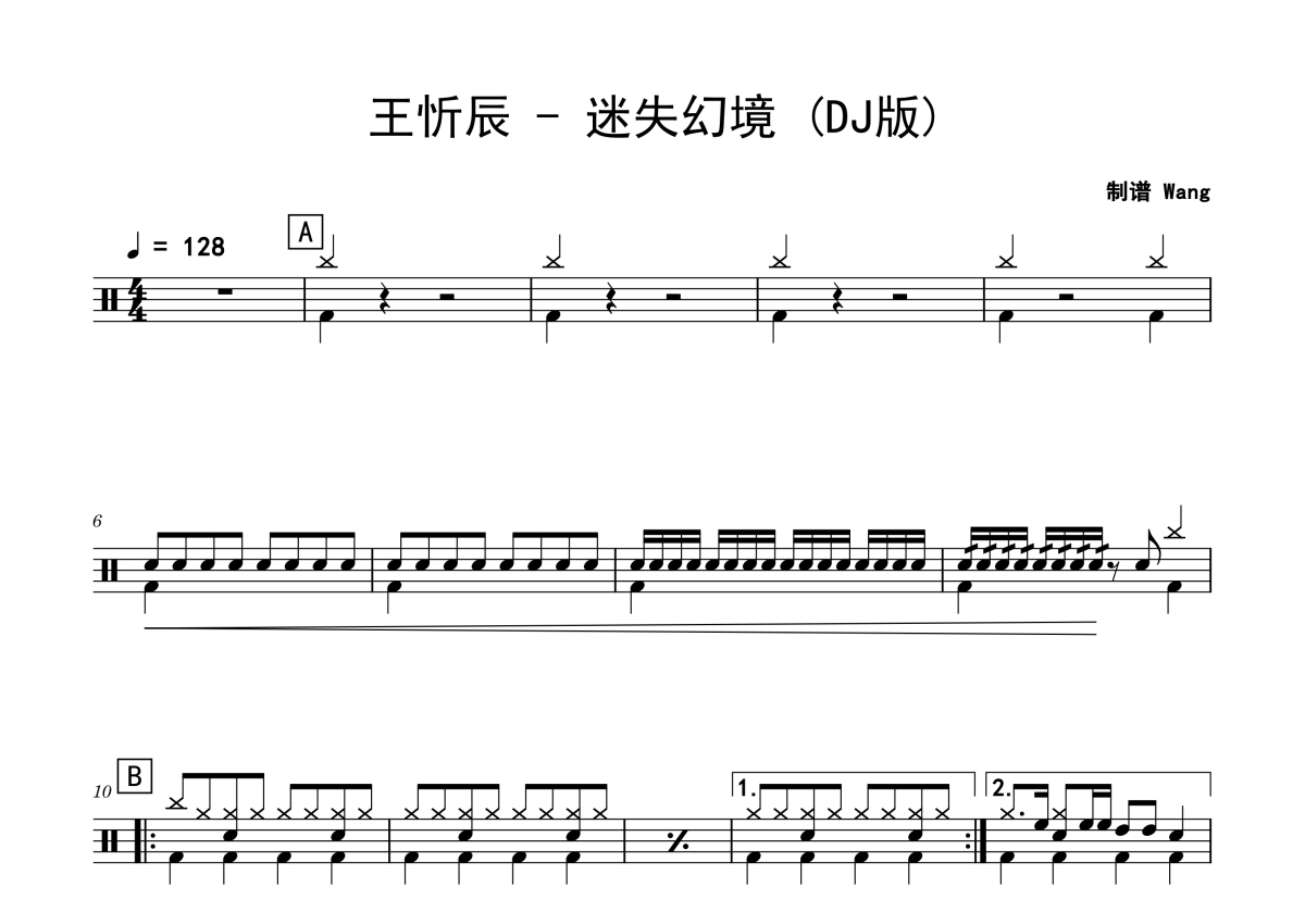 王忻辰《迷失幻境》鼓谱 - 架子鼓谱 - (DJ版)