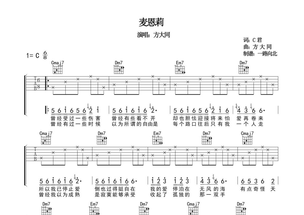 方大同《麦恩莉》吉他谱 - C调弹唱六线谱