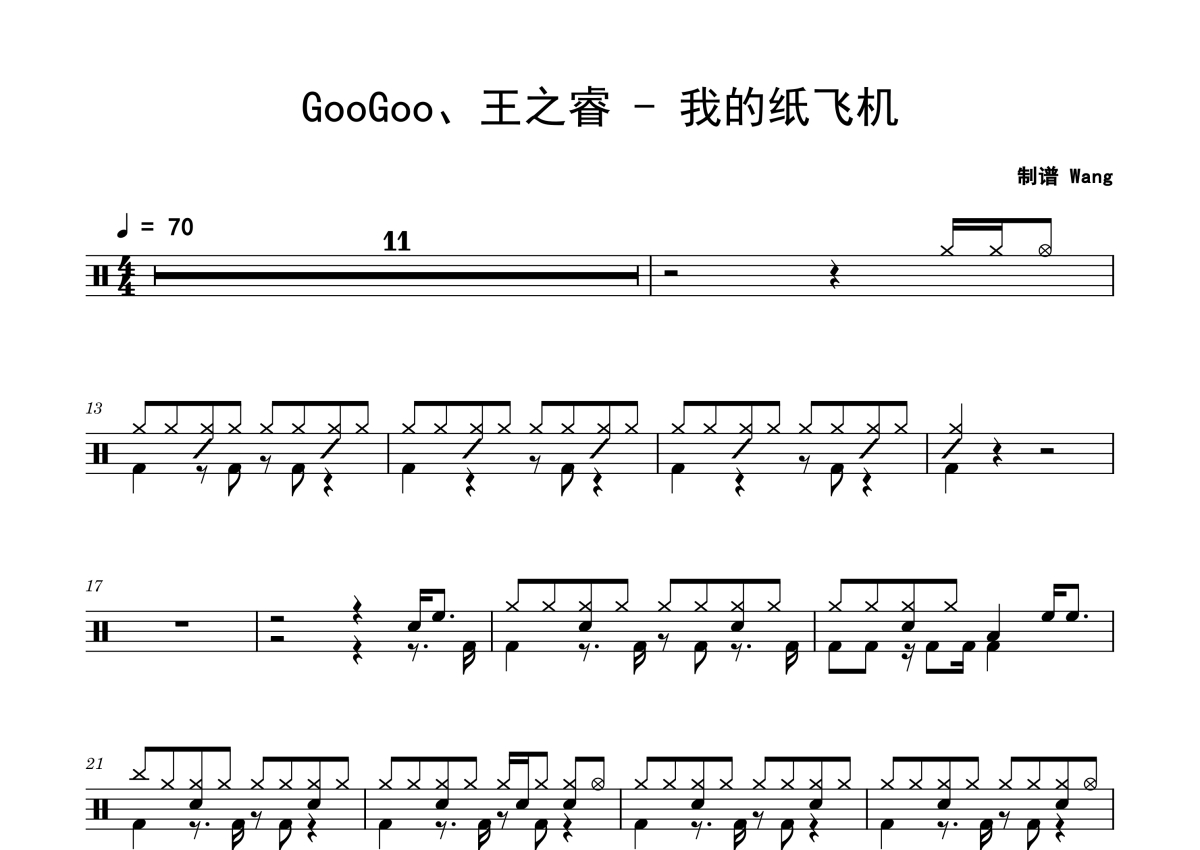 GooGoo/王之睿《我的纸飞机》鼓谱 - 架子鼓谱