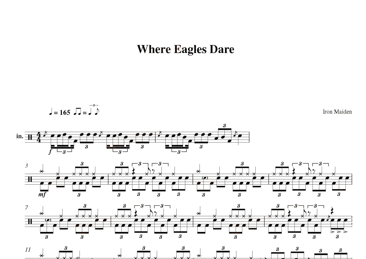 Iron Maiden《where eagles dare》鼓谱 - 架子鼓谱