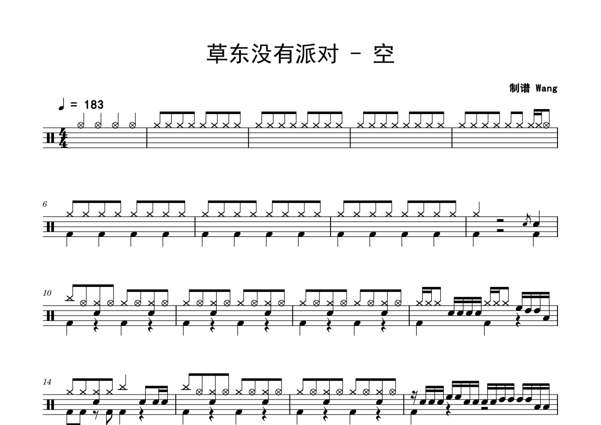 《空》是草东没有派对演唱的一首歌曲,拍号为4/4拍,歌曲速度为每分钟183拍,这份鼓谱共有三张高清图谱,图谱由 @老虎不说谎 编配上传,图谱使用五线谱编配,使用这份空架子鼓谱,你将能够轻松地敲打出这首草东没有派对的空,快来尝试吧。