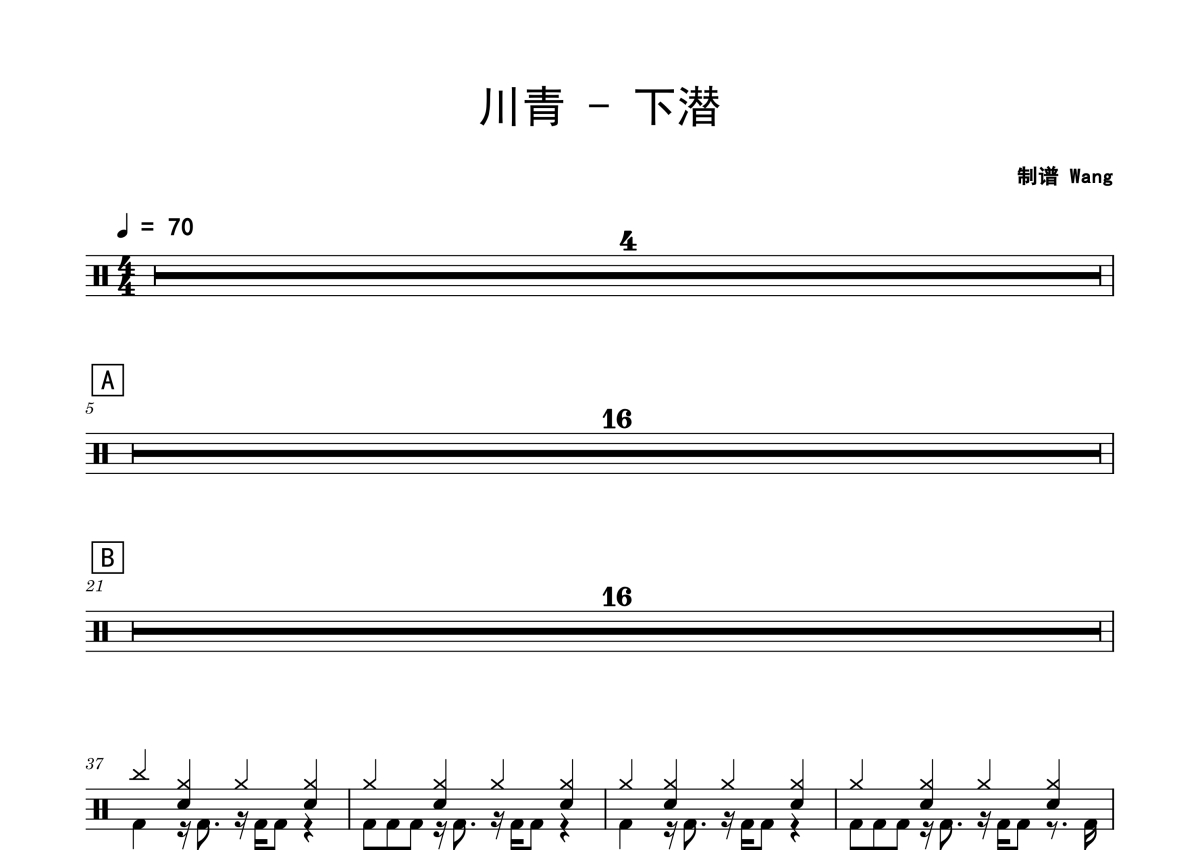 川青《下潜》鼓谱 - 架子鼓谱