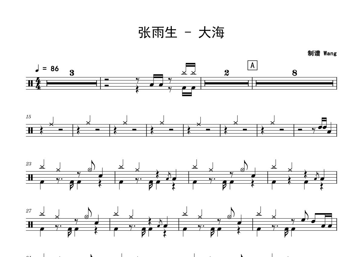 张雨生《大海》鼓谱 - 架子鼓谱