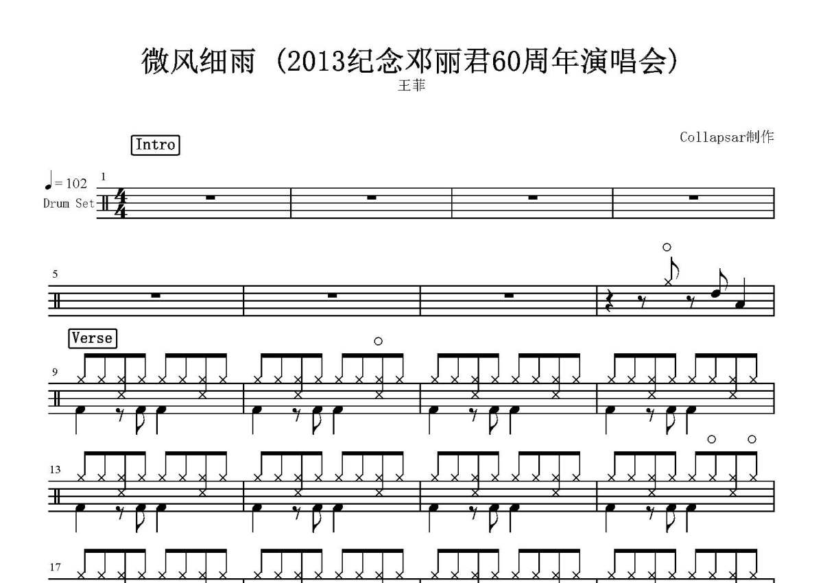 王菲《微风细雨》鼓谱 - 架子鼓谱