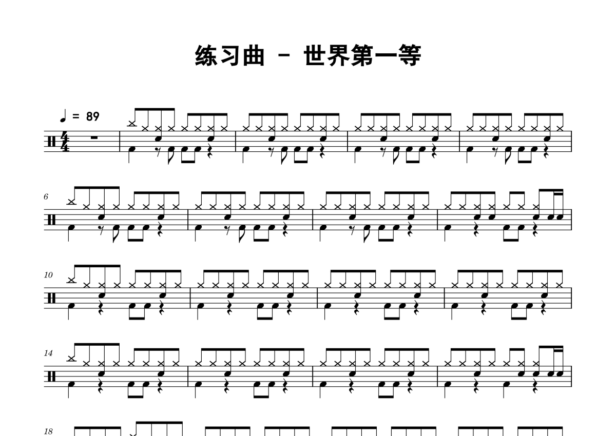 练习曲《世界第一等》鼓谱 - 架子鼓谱