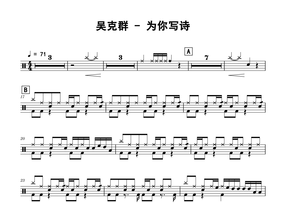 吴克群《为你写诗》鼓谱 - 架子鼓谱