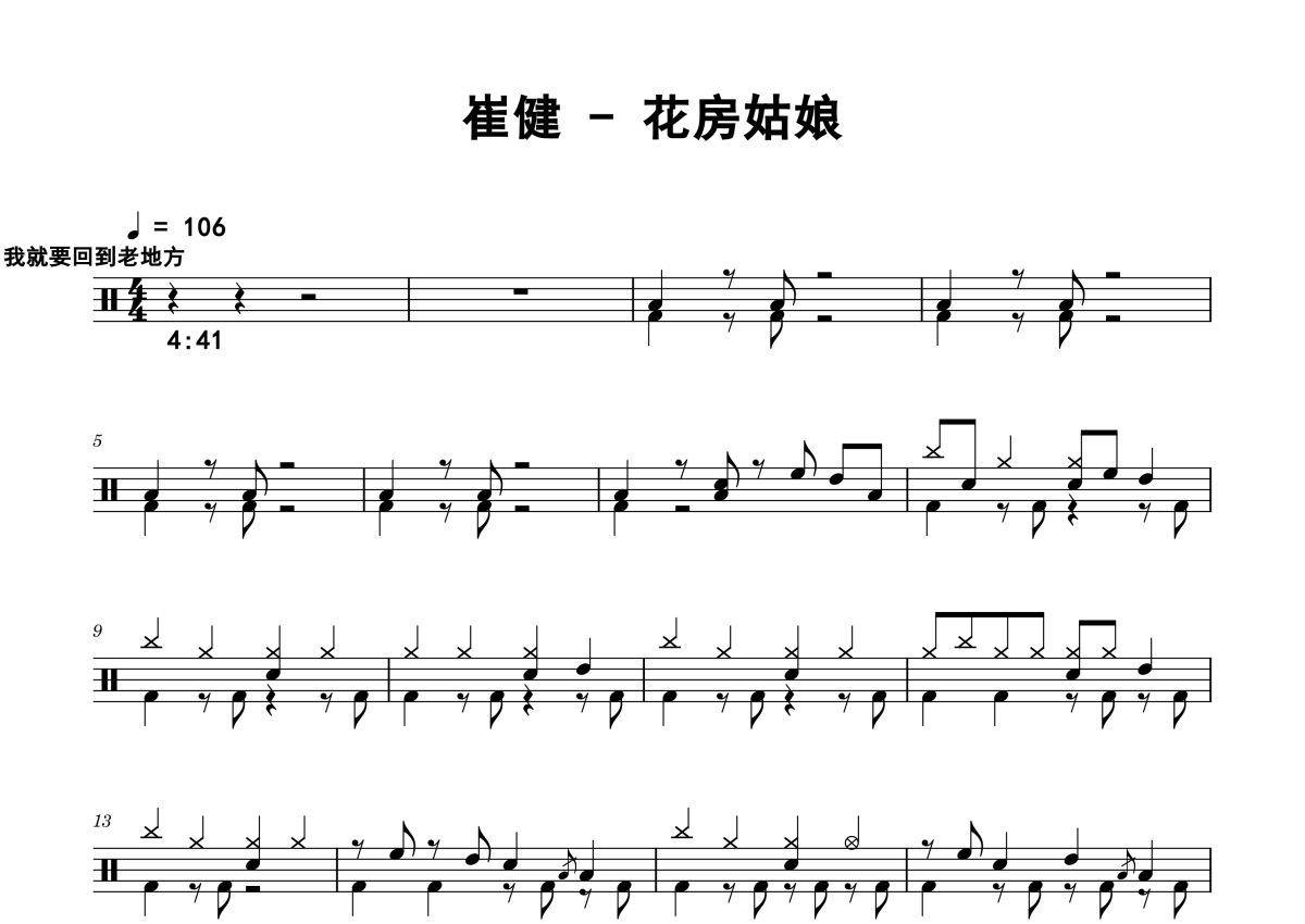 崔健《花房姑娘》鼓谱 - 架子鼓谱