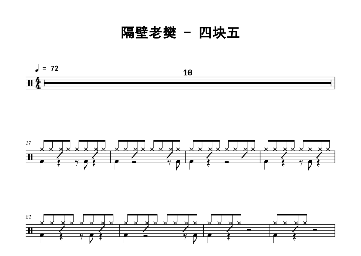隔壁老樊《四块五》鼓谱 - 架子鼓谱