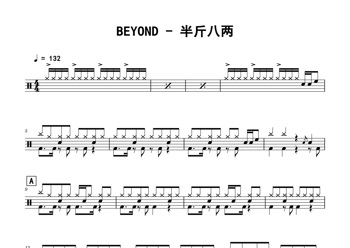 BEYOND《半斤八两》鼓谱 - 架子鼓谱