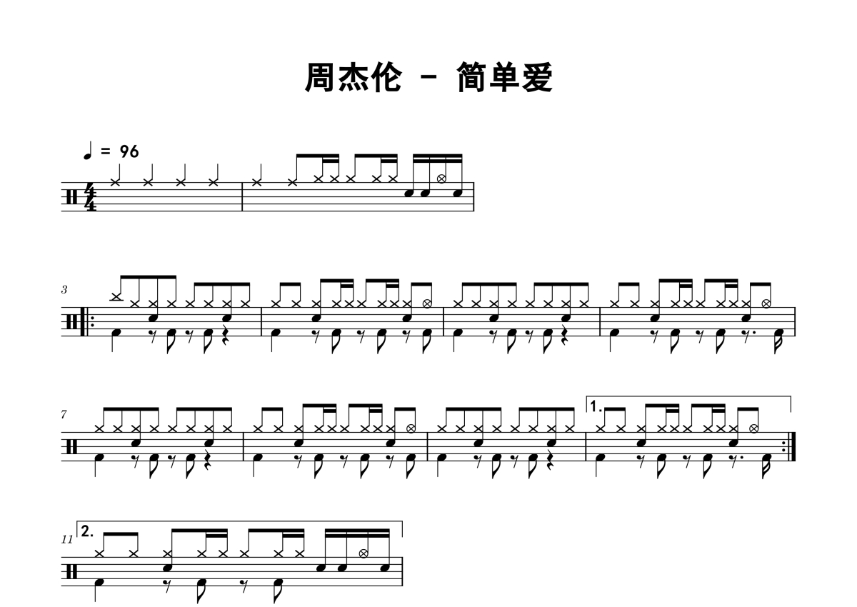 周杰伦《简单爱》鼓谱 - 架子鼓谱