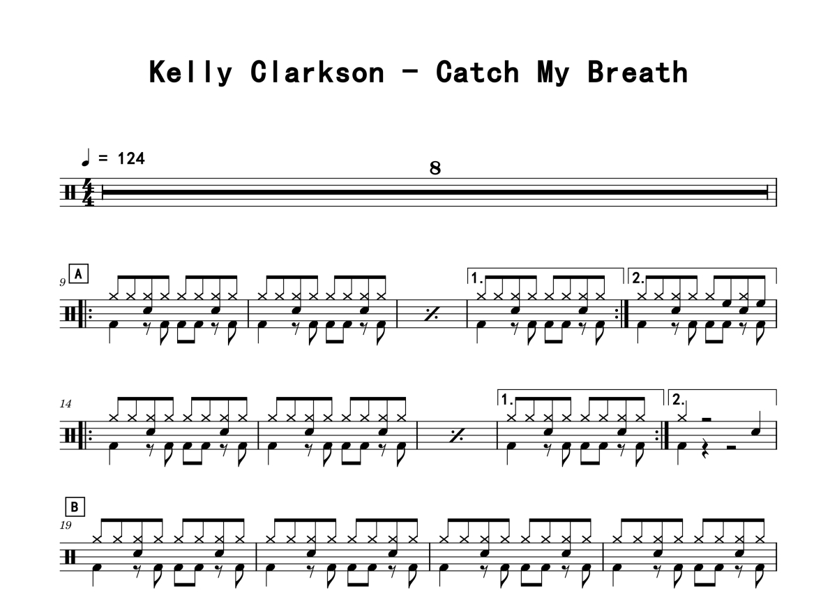 Kelly Clarkson《Catch My Breath》鼓谱 - 架子鼓谱