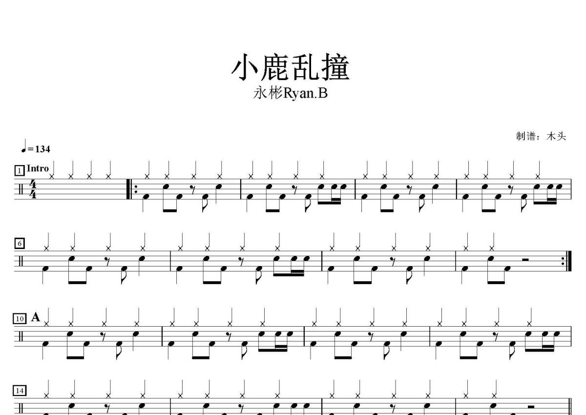 永彬Ryan.B《小鹿乱撞》鼓谱 - 架子鼓谱