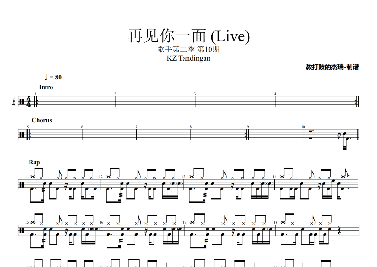 KZ Tandingan《再见你一面》鼓谱 - 架子鼓谱 - 歌手第二季 (Live) 第10期