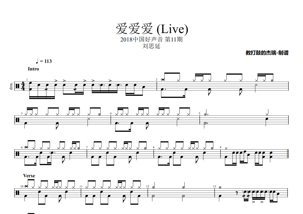 刘思延《爱爱爱》鼓谱 - 架子鼓谱 - 2018中国好声音 (Live) 第11期