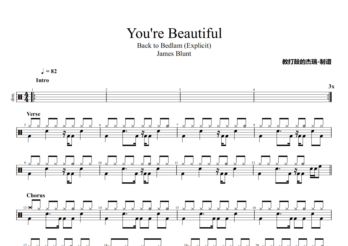 James Blunt《You're Beautiful》鼓谱 - 架子鼓谱