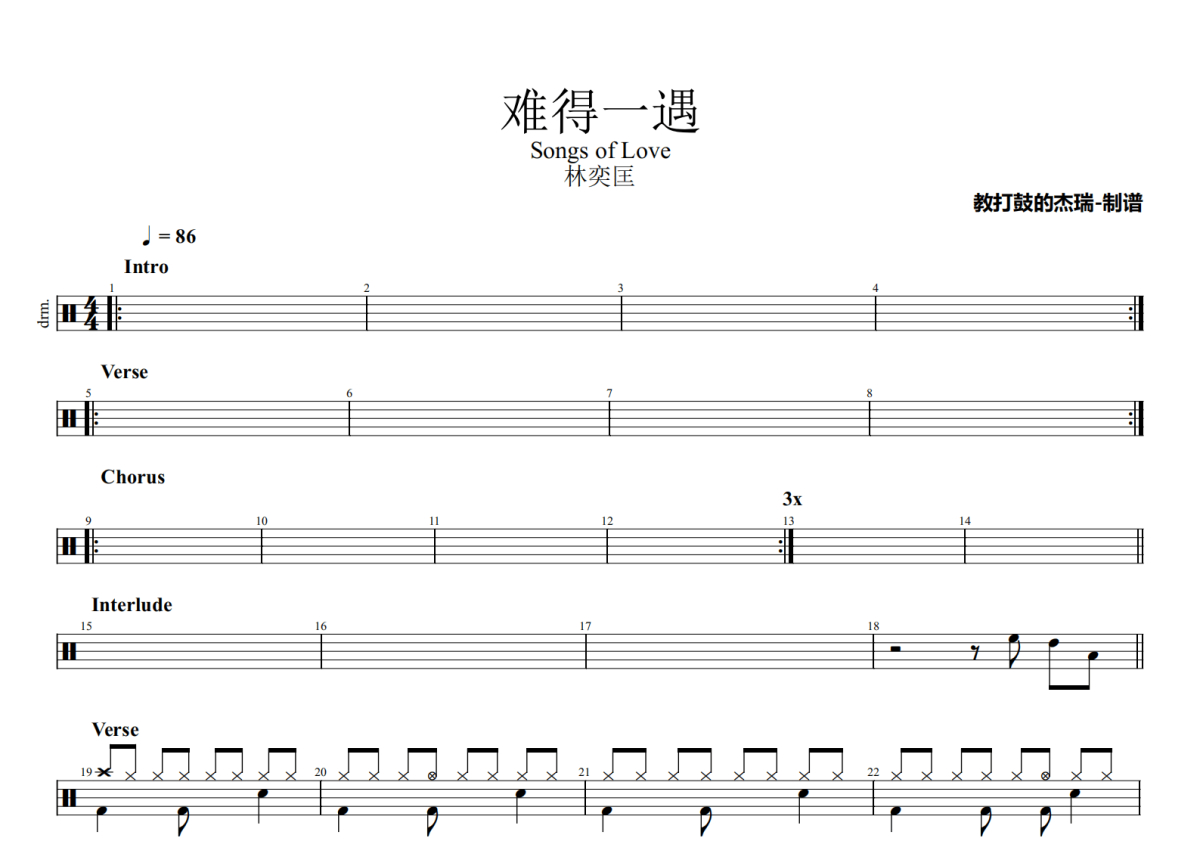 林奕匡《难得一遇》鼓谱 - 架子鼓谱