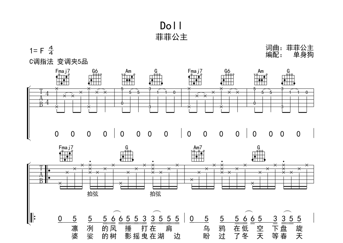 菲菲公主《Doll》吉他谱 - C调弹唱六线谱