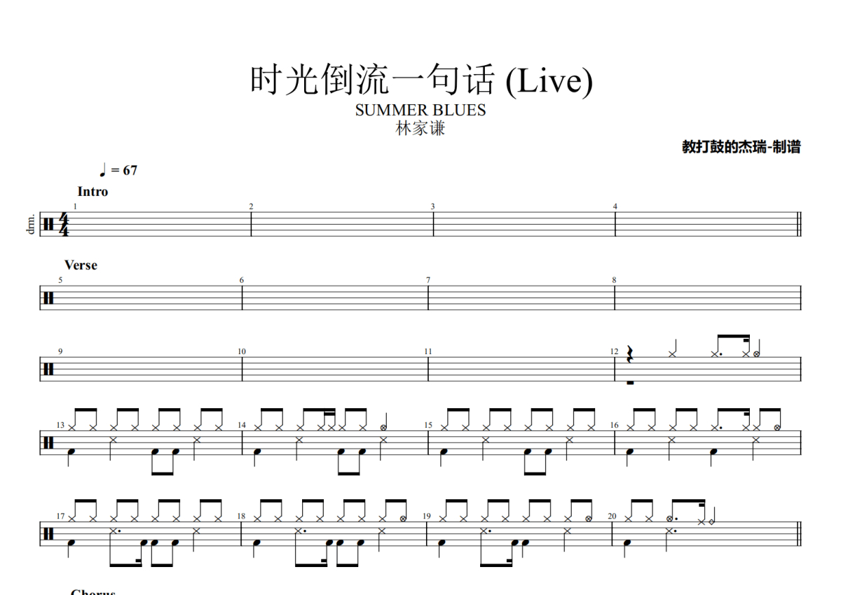 林家谦《时光倒流一句话》鼓谱 - 架子鼓谱 - SUMMER BLUES