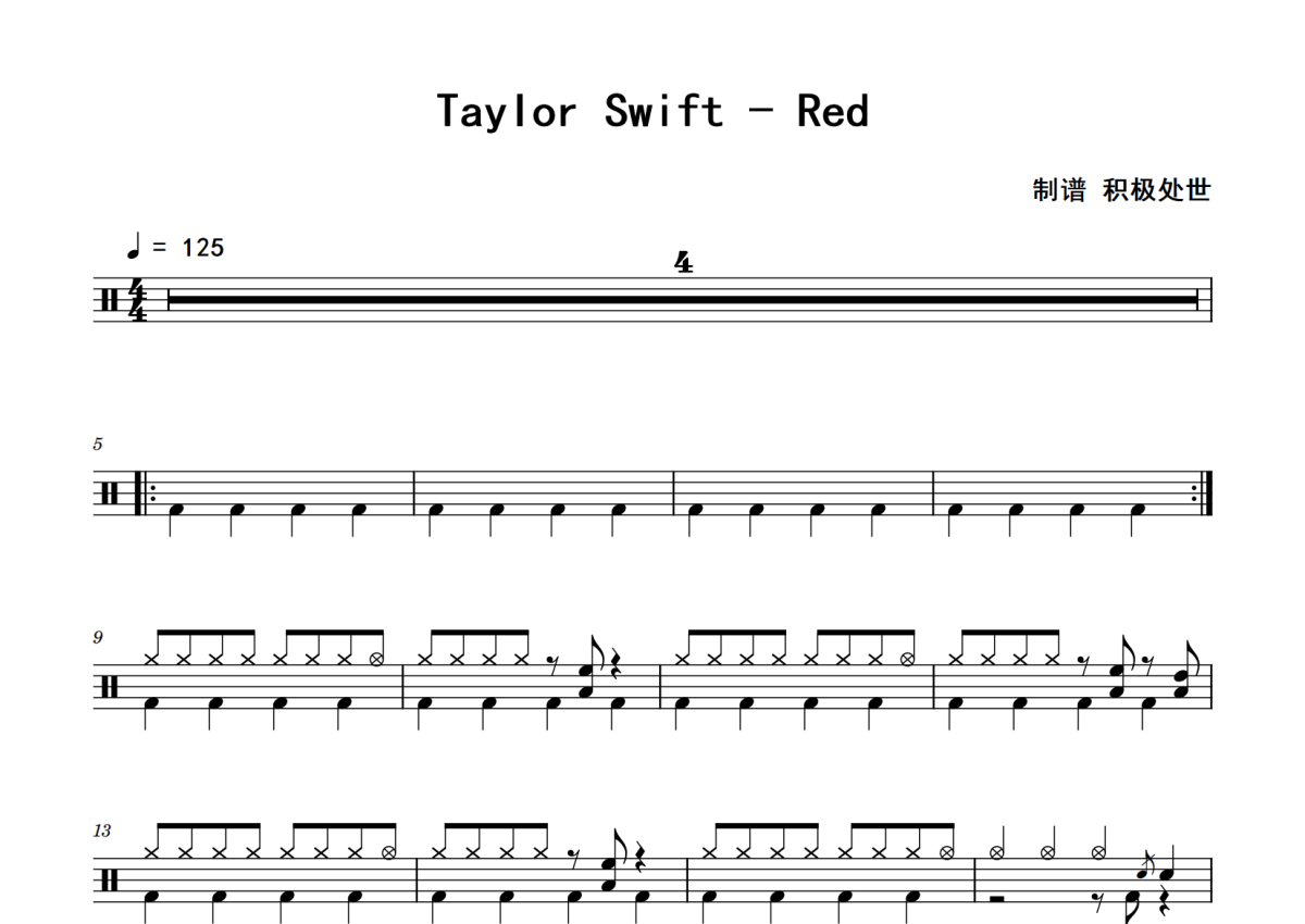 Taylor Swift《Red》鼓谱 - 架子鼓谱