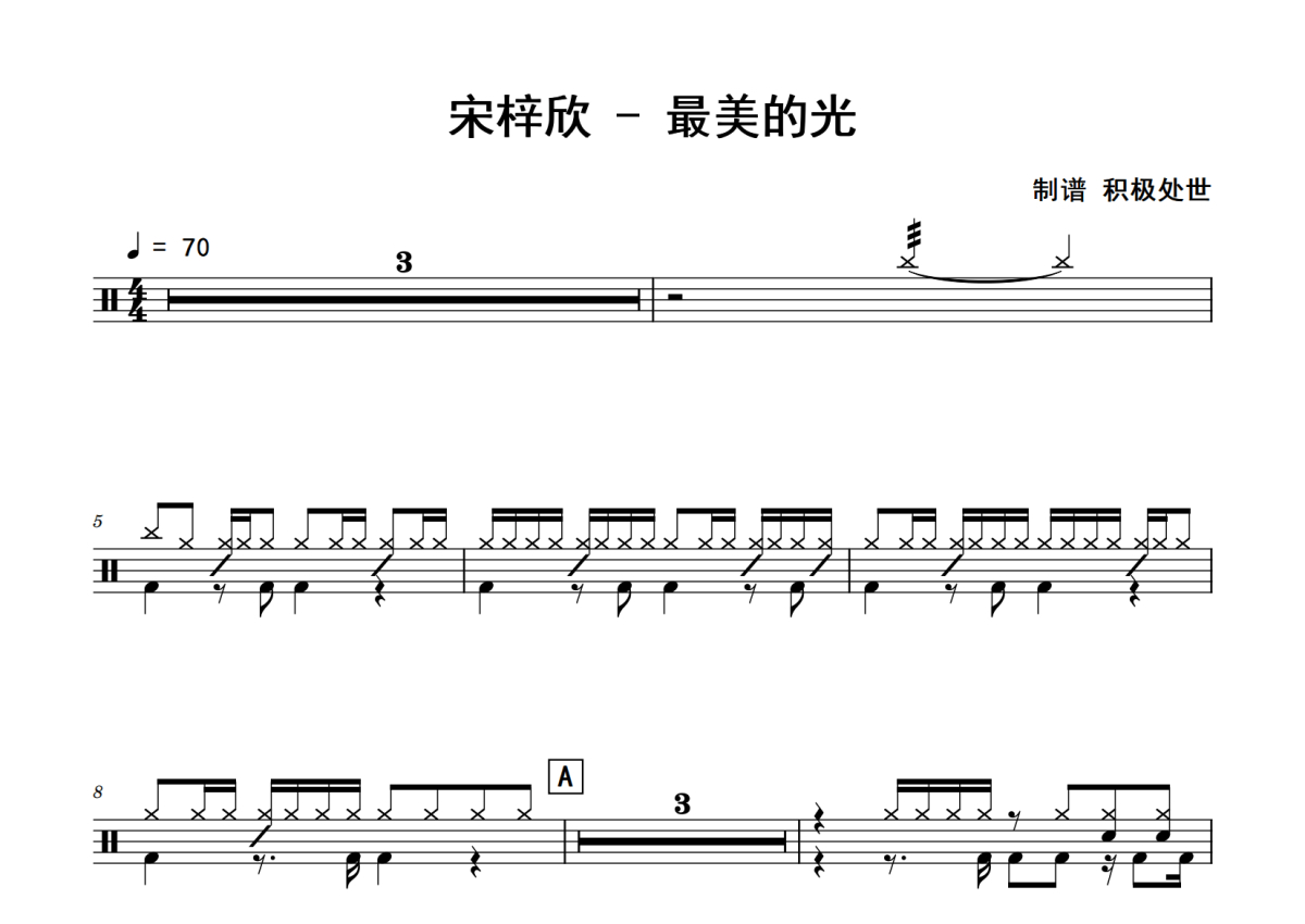 宋梓欣《最美的光》鼓谱 - 架子鼓谱