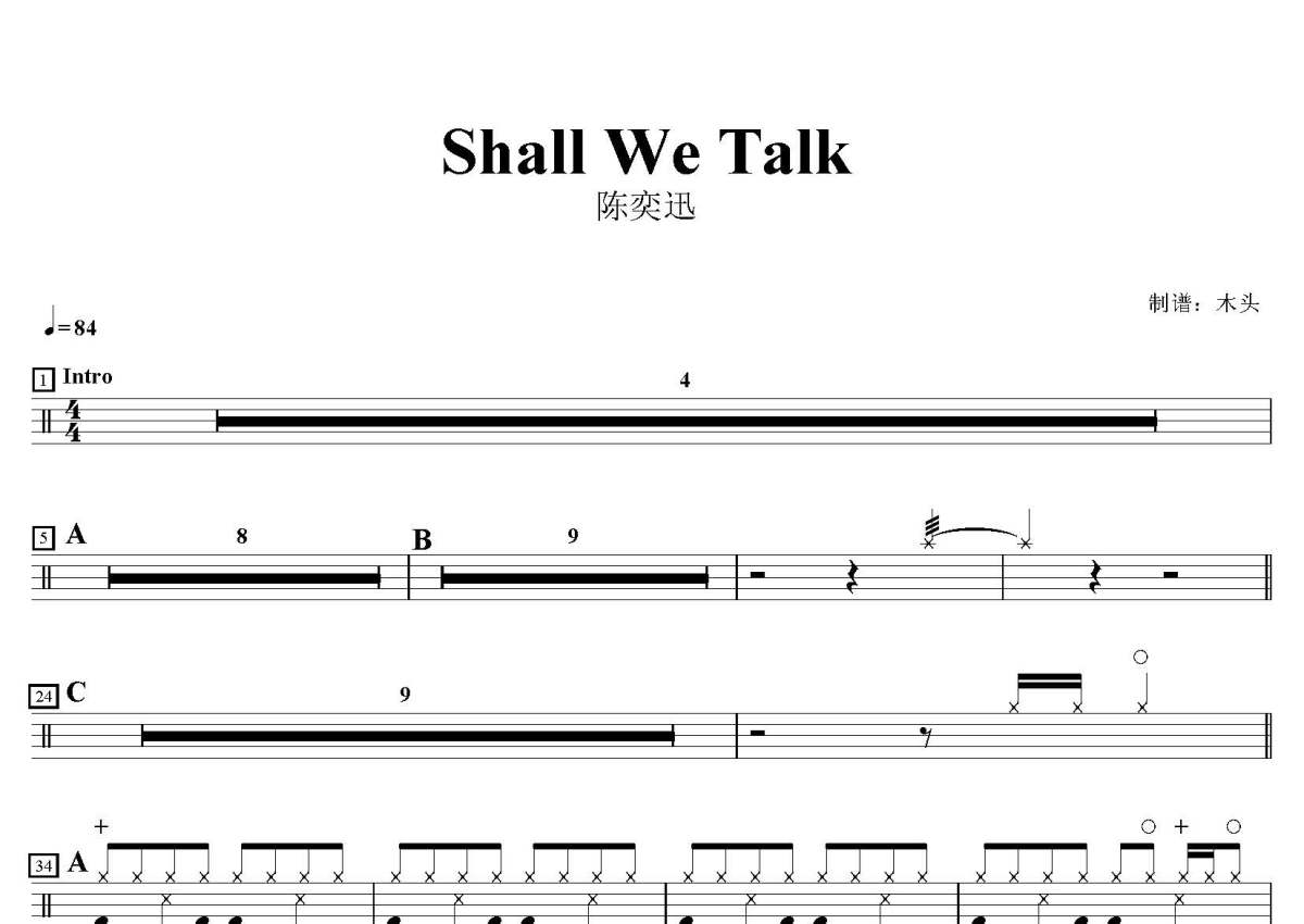 陈奕迅《Shall We Talk》鼓谱 - 架子鼓谱