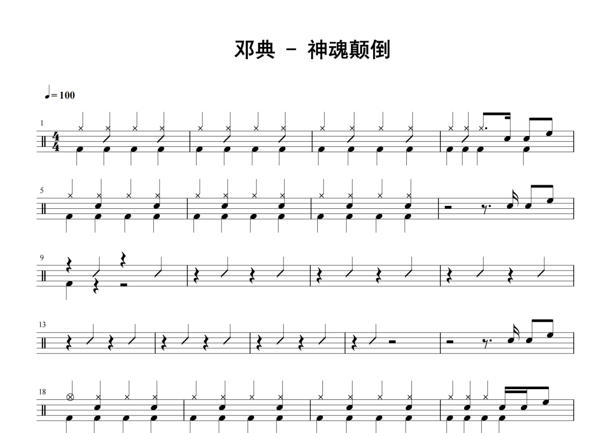邓典《神魂颠倒》鼓谱 - 架子鼓谱