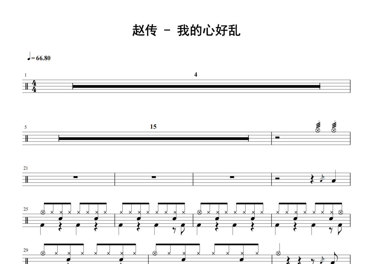 赵传《我的心好乱》鼓谱 - 架子鼓谱