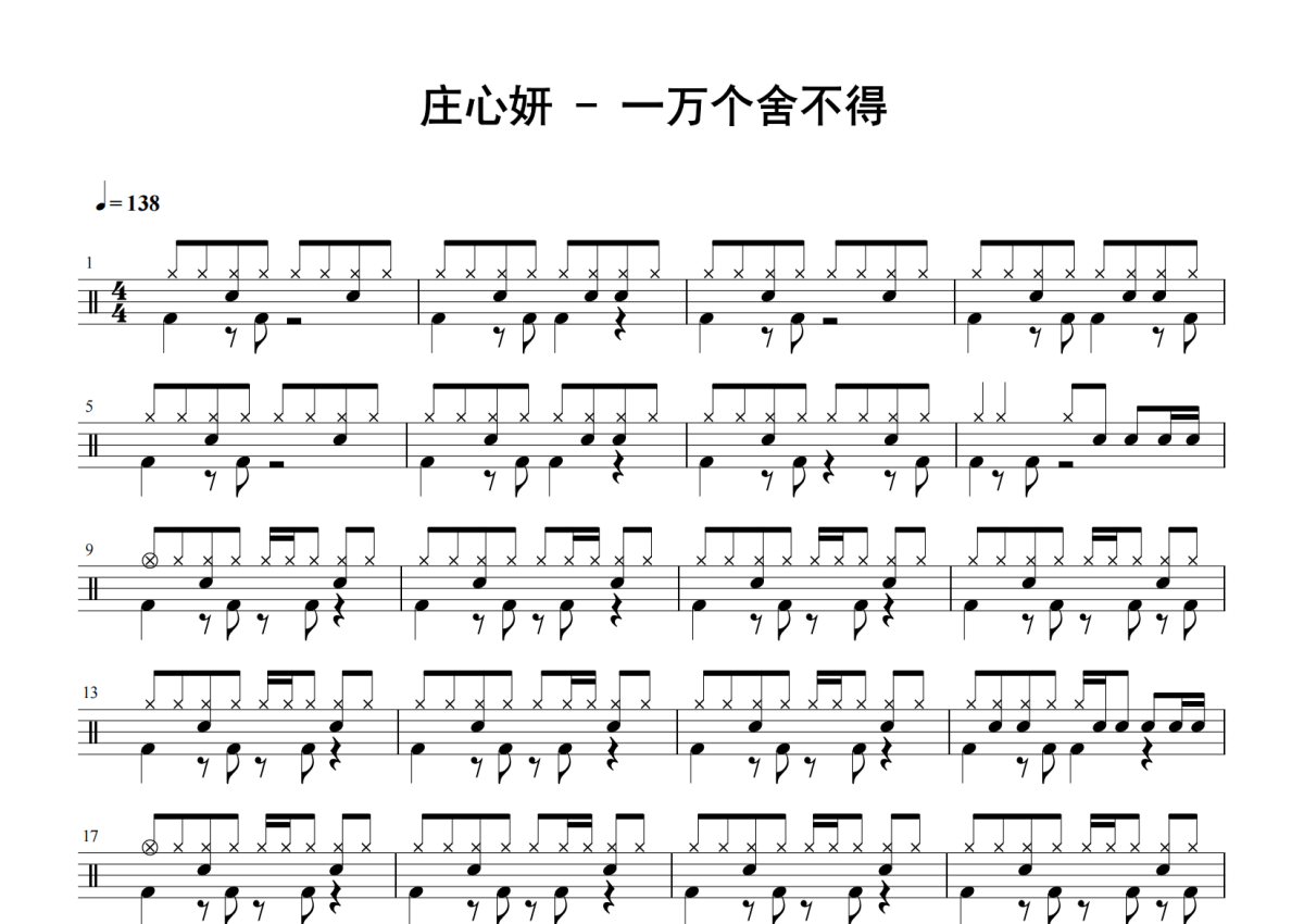庄心妍《一万个舍不得》鼓谱 - 架子鼓谱