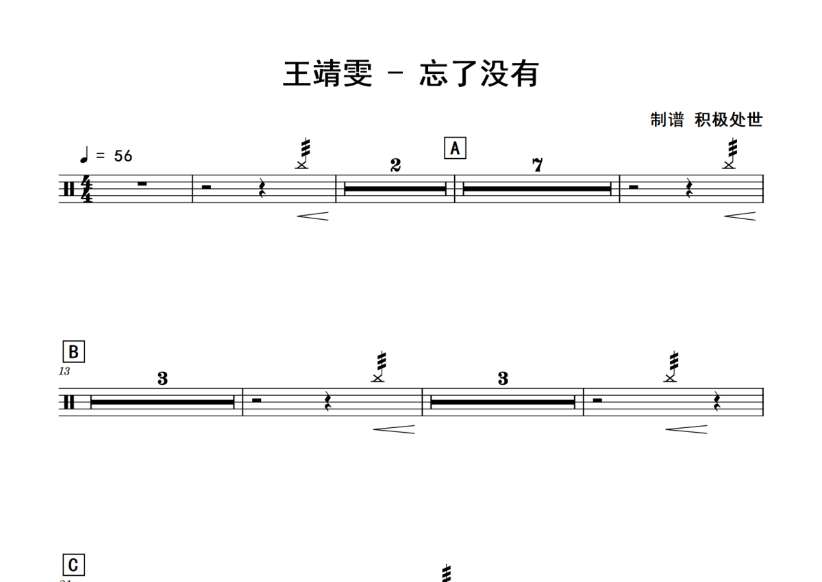 王靖雯《忘了没有》鼓谱 - 架子鼓谱