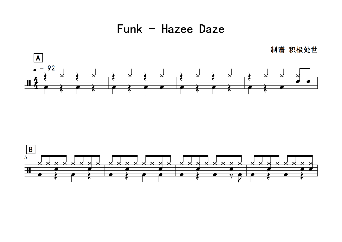 Funk《Hazee Daze》鼓谱 - 架子鼓谱