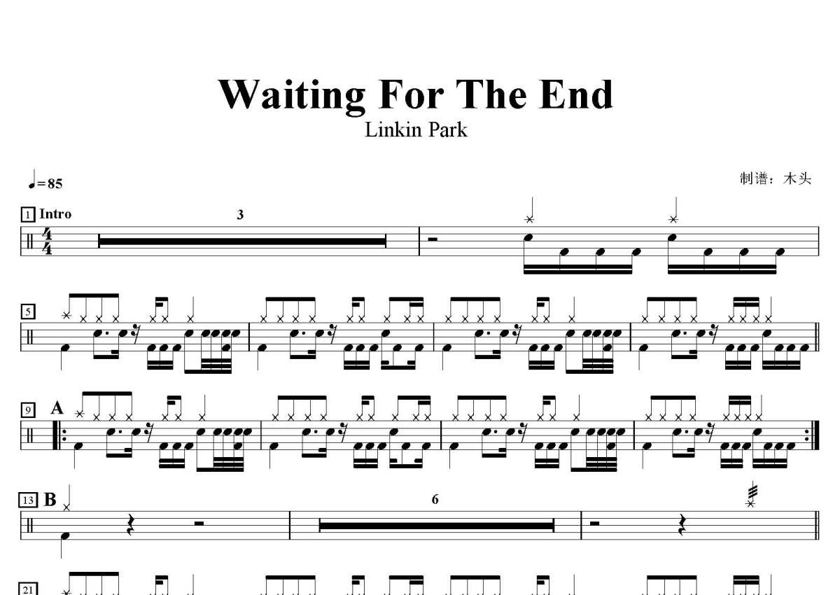 Linkin Park《Waiting For The End》鼓谱 - 架子鼓谱