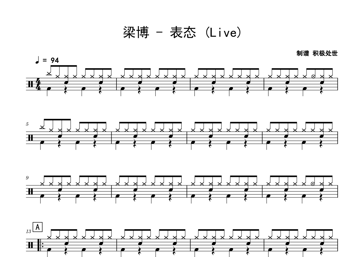 梁博《表态》鼓谱 - 架子鼓谱 - Live