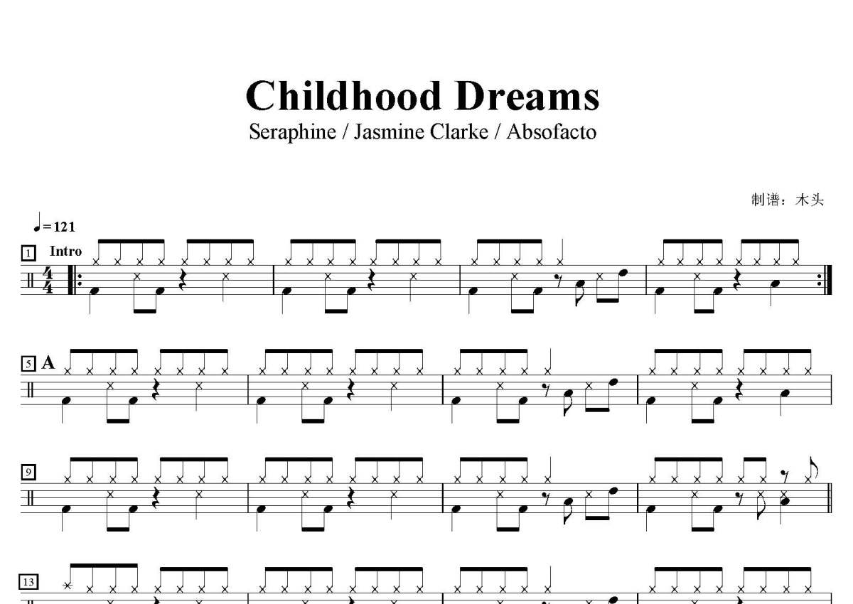 《Childhood Dreams》是Seraphine / Jasmine Clarke / Absofacto演唱的一首歌曲,这份鼓谱共有两张高清图谱,图谱由 @打鼓谱 编配上传,图谱使用五线谱编配,使用这份Childhood Dreams架子鼓谱,你将能够轻松地敲打出这首Seraphine / Jasmine Clarke / Absofacto的Childhood Dreams,快来尝试吧。歌曲名:Childhood Dreams,歌手名:Seraphine,专辑名:Childhood Dreams。