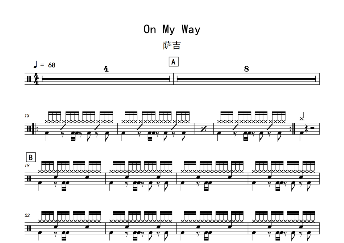 萨吉《On My Way》鼓谱 - 架子鼓谱