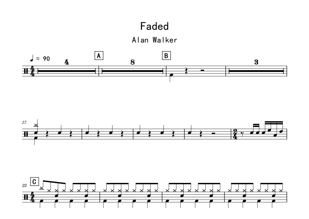 Alan Walker《Faded》鼓谱 - 架子鼓谱