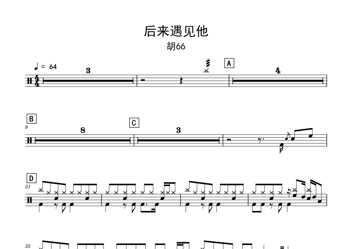 胡66《后来遇见他》鼓谱 - 架子鼓谱