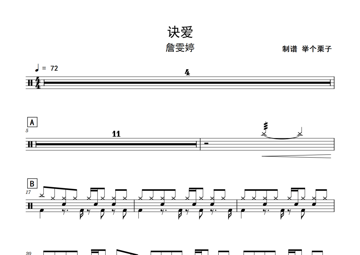 詹雯婷《诀爱》鼓谱 - 架子鼓谱 - 初级